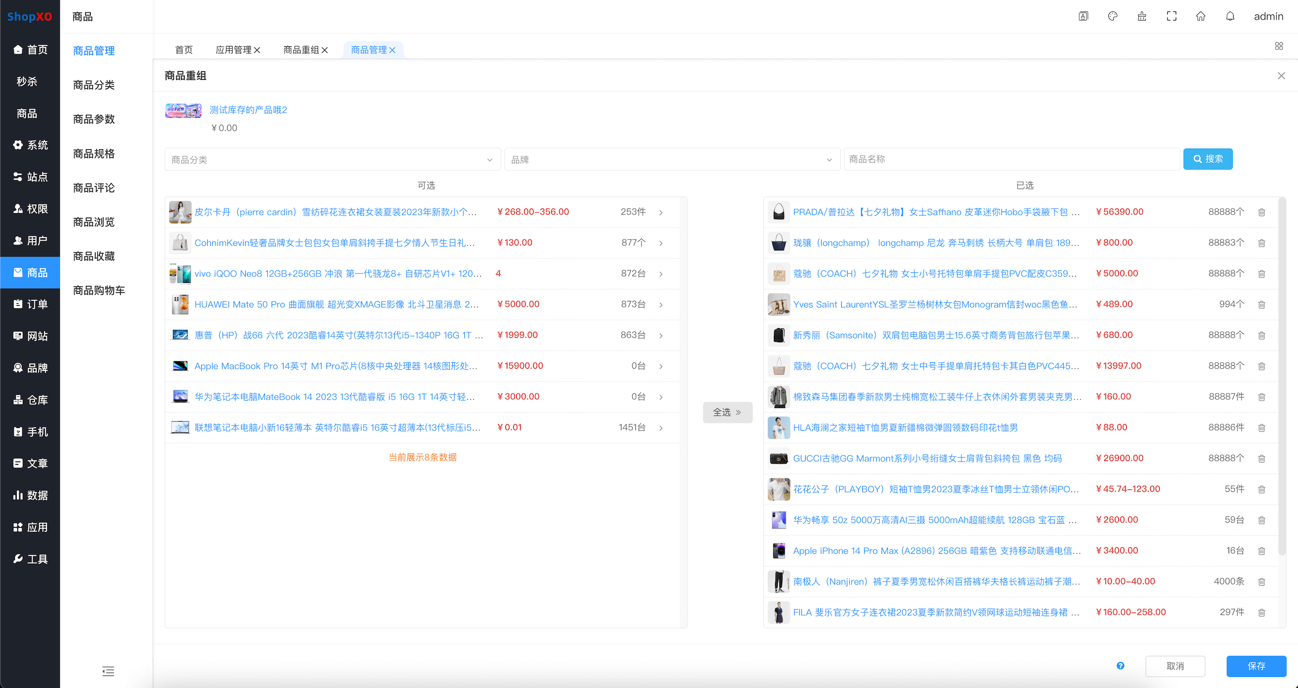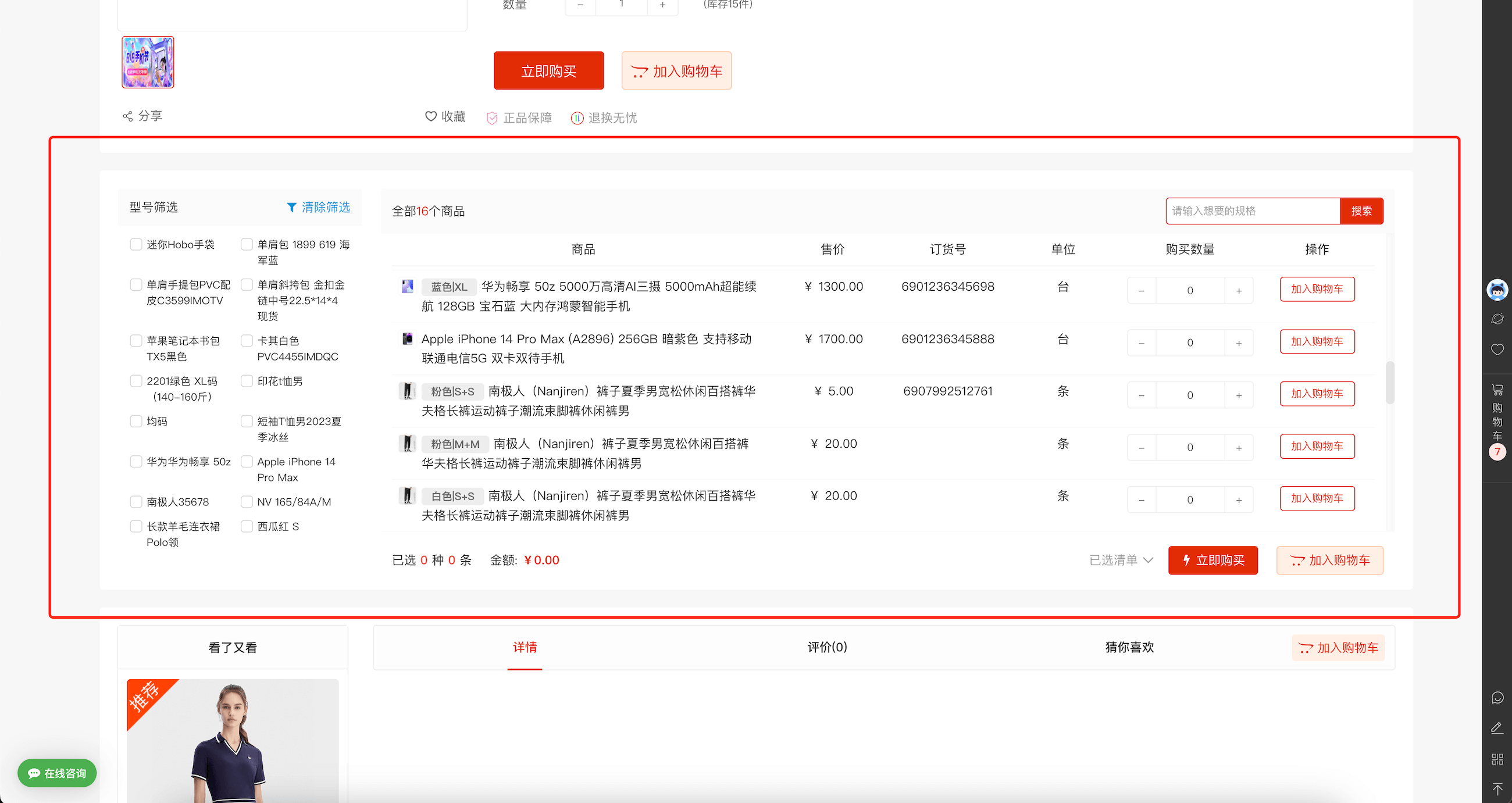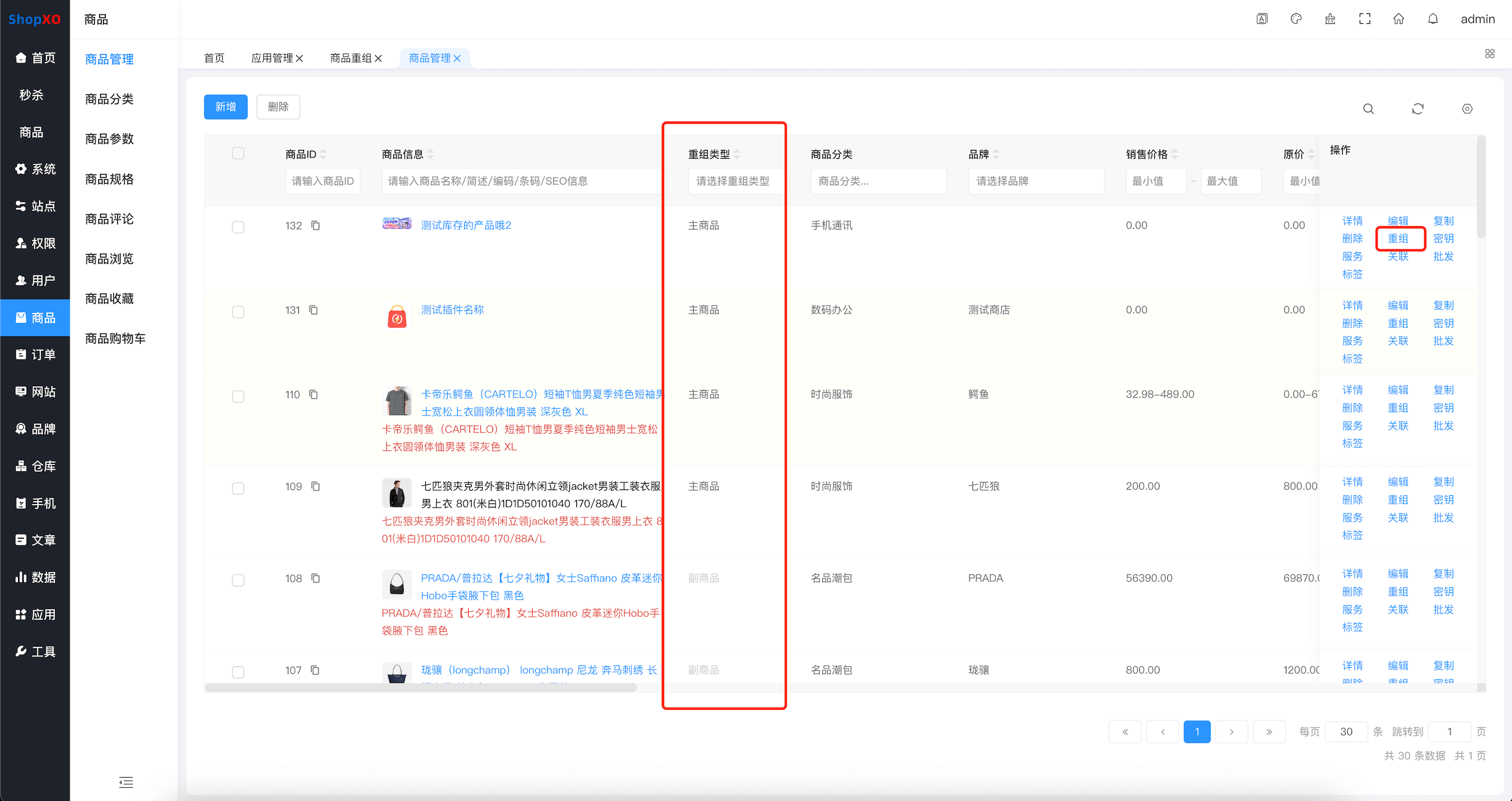 主商品可以关联多个商品作为副商品,商品详情页面展示关联商品,搜索页面排除副商品展示关联的商品。