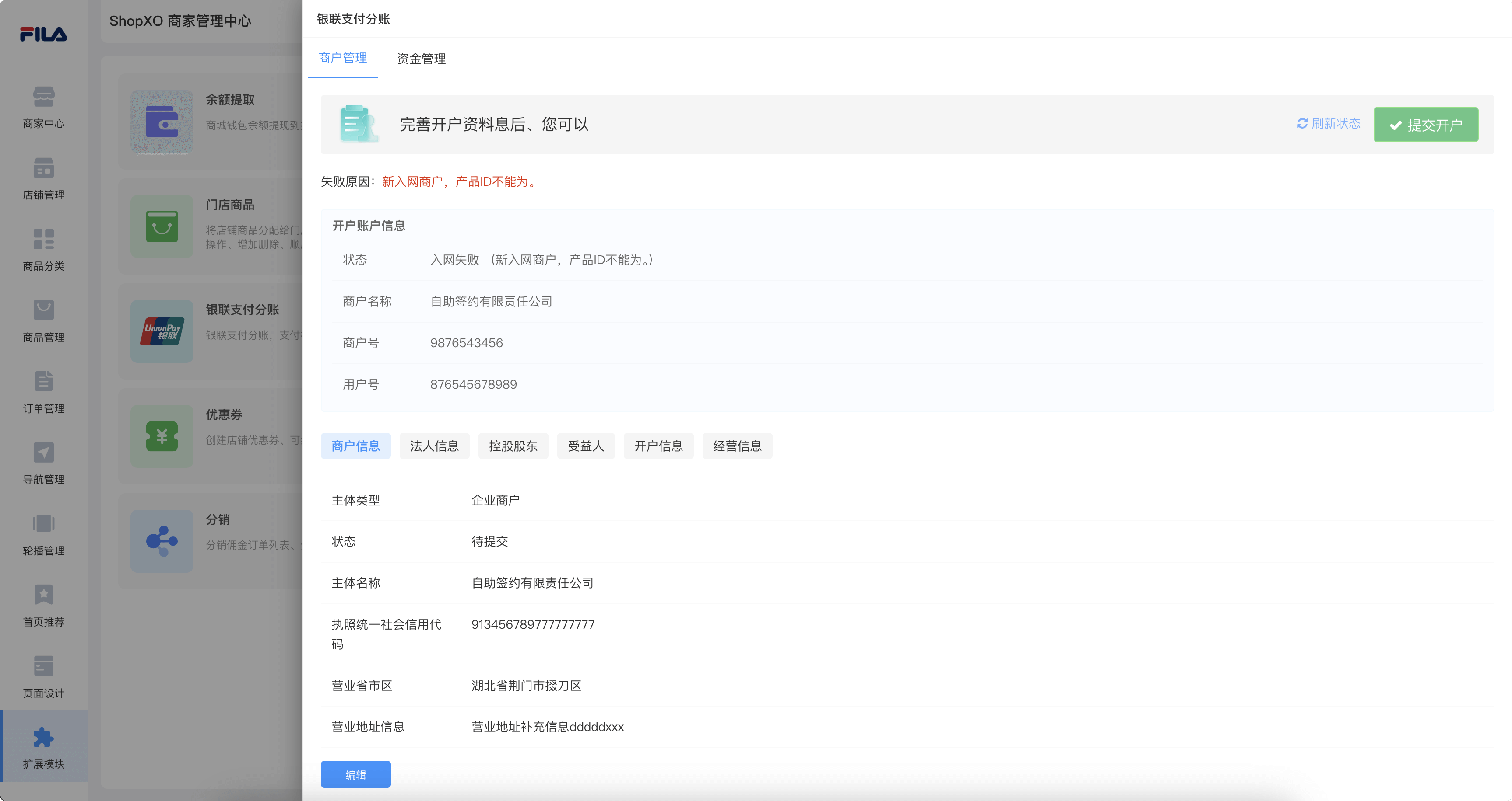 UnionPay payment sub account system,Order payment,Merchant self-service entry,Withdrawal,automatic split billing