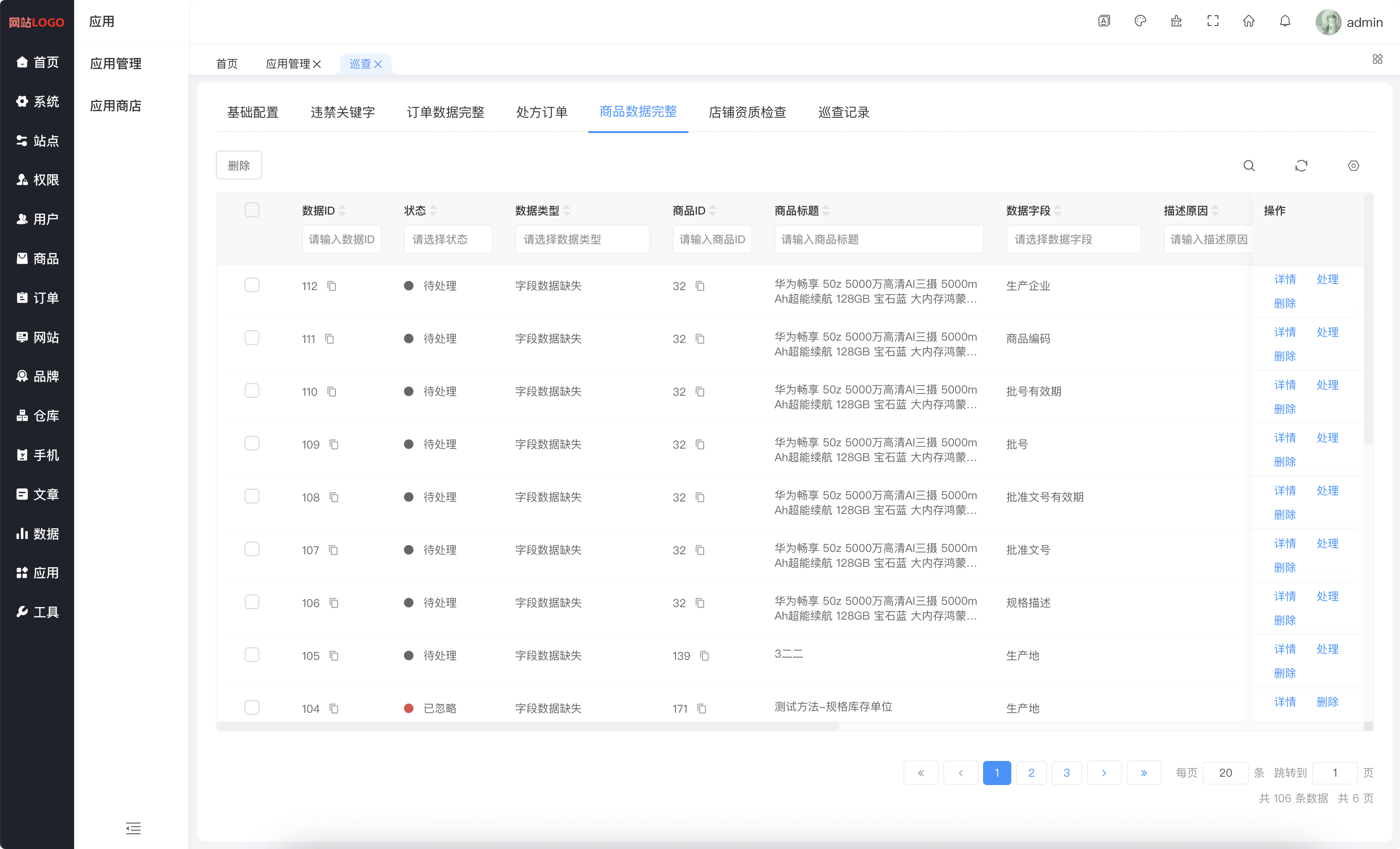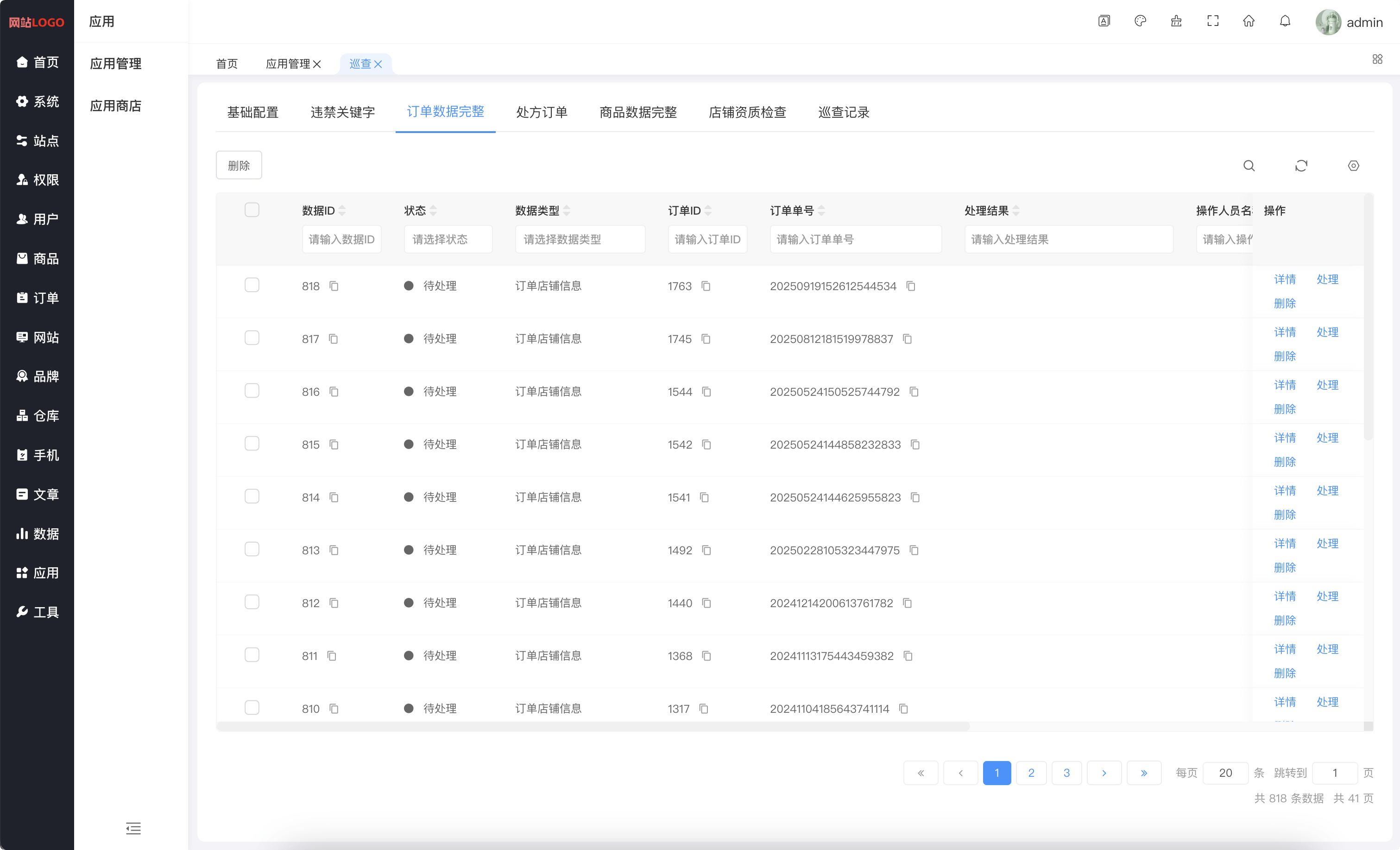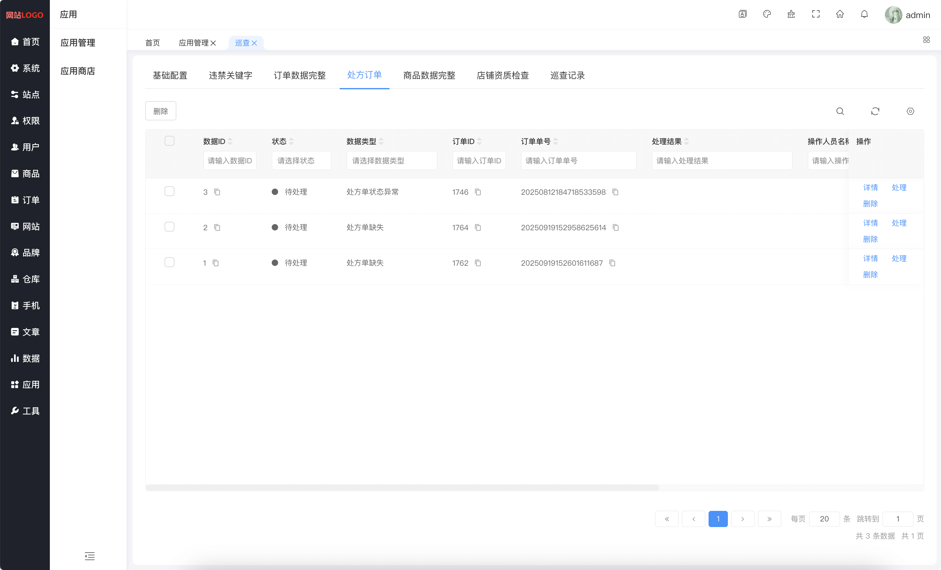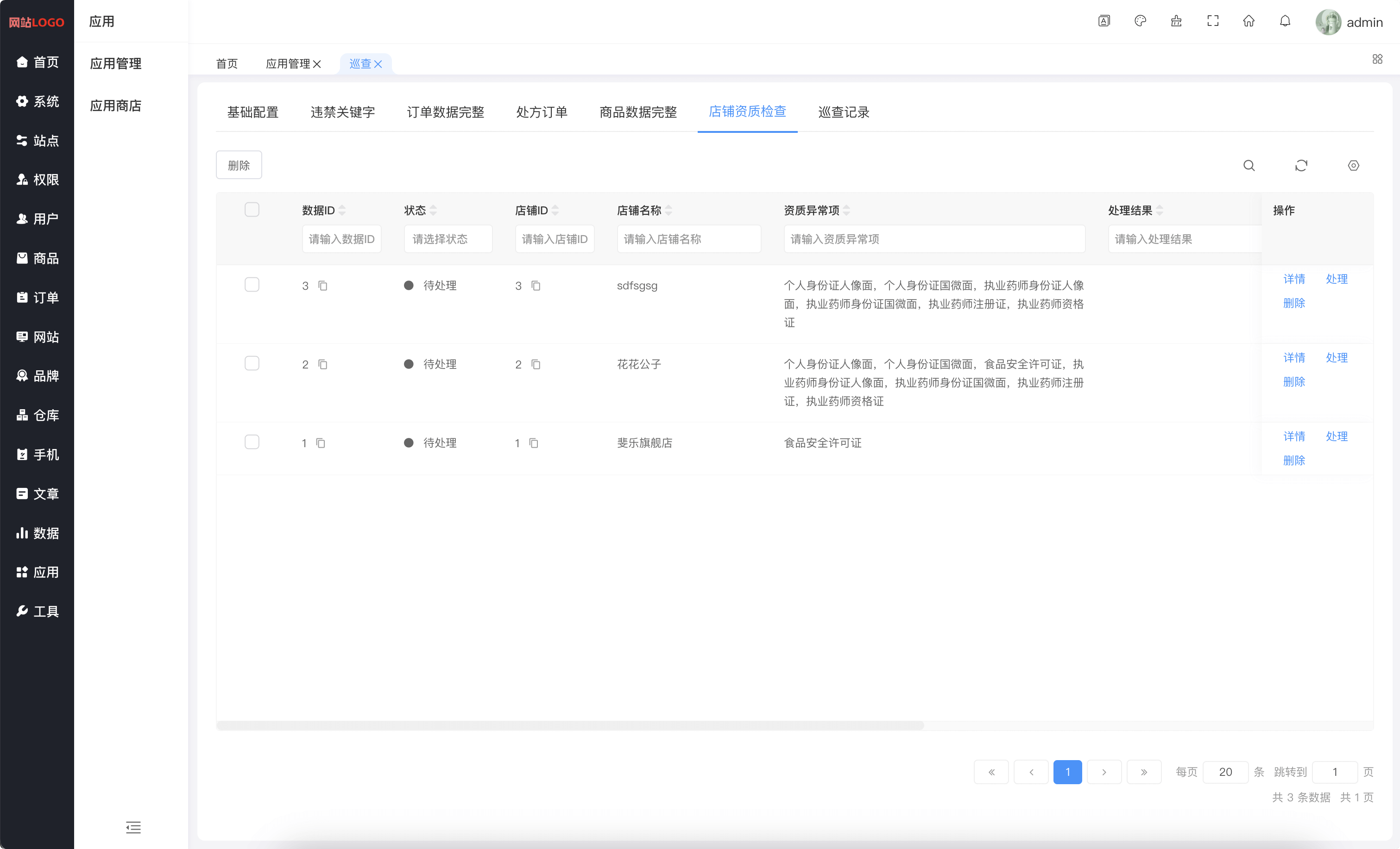 系统内容安全巡查(违禁关键字检查,订单数据完整,处方订单,商品数据完整,店铺资质检查,巡查记录)